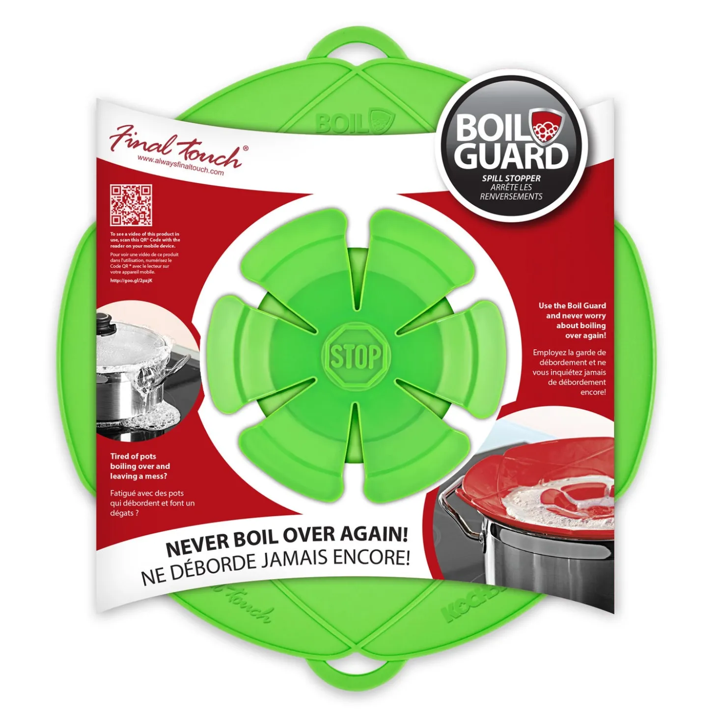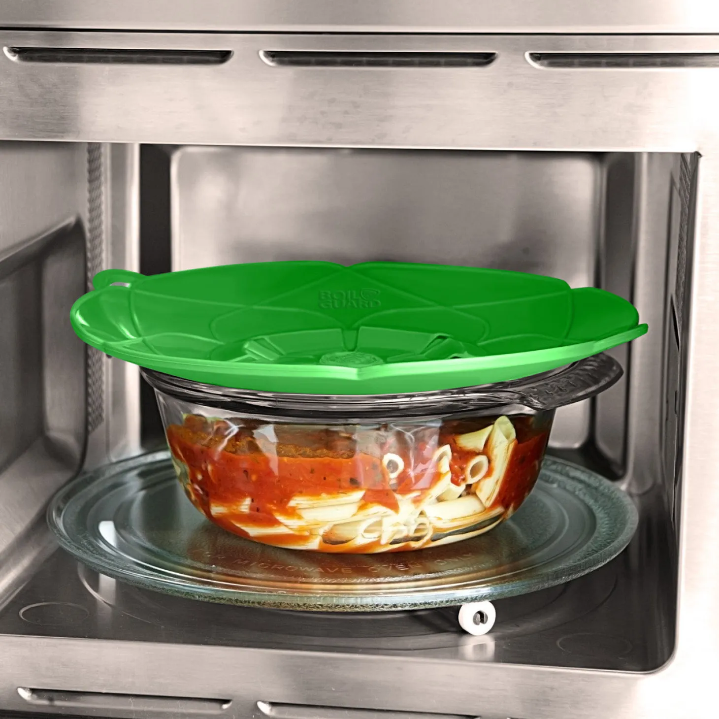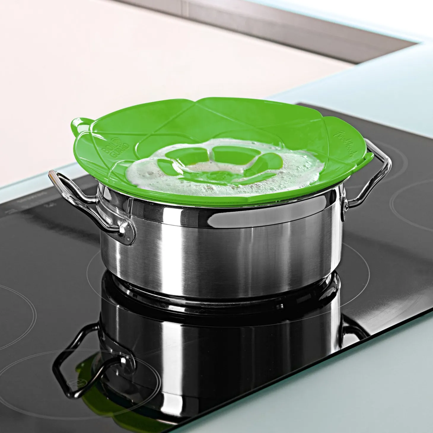 Simply place on the saucepan & it’s ready to use!It’s ingenious and it really works! Use with milk, pasta, rice and other food that is prone to boiling over. Thanks to the Boil Guard your stovetop will stay spotless – nothing will boil over again!Energy SaverThe centre piece will act as a vent and will allow steam to escape to prevent boiling over. This maximizes the internal cooking temperature, increasing energy efficiency vs. cooking without the lid.Microwave SafeUse as a splatter guard (right side up) or as a steamer lid (inverted).Heat resistant / Food-gradeMade of FDA approved food-grade silicone. BPA-free. Temperature resistant up to 230°C (446°F). Can also be used as a trivet.Dishwasher SafeEasy-to-clean, just place in the dishwasher.Great For SteamingEasily steam vegetables. Use as a double steamer with rice or other grains in the bottom.Oven & Stovetop SafeUse with or without the middle insert to prevent splatter in the oven or on the stovetop.
