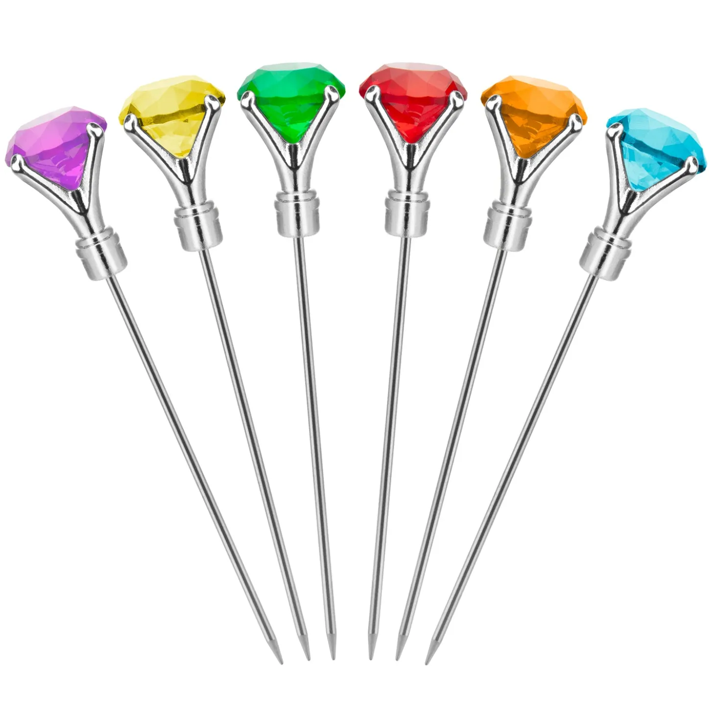 Set of 6 stainless steel picks with faux glass diamonds.