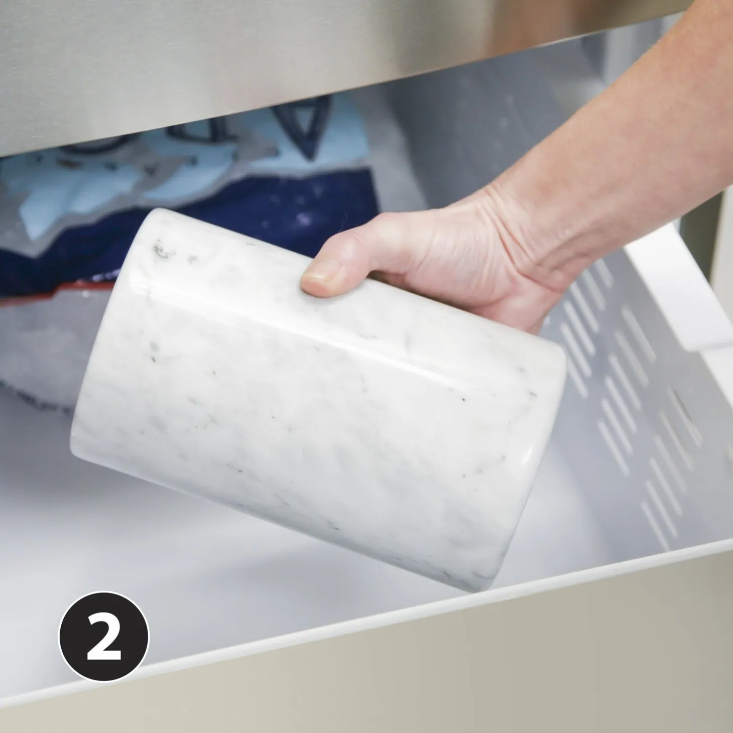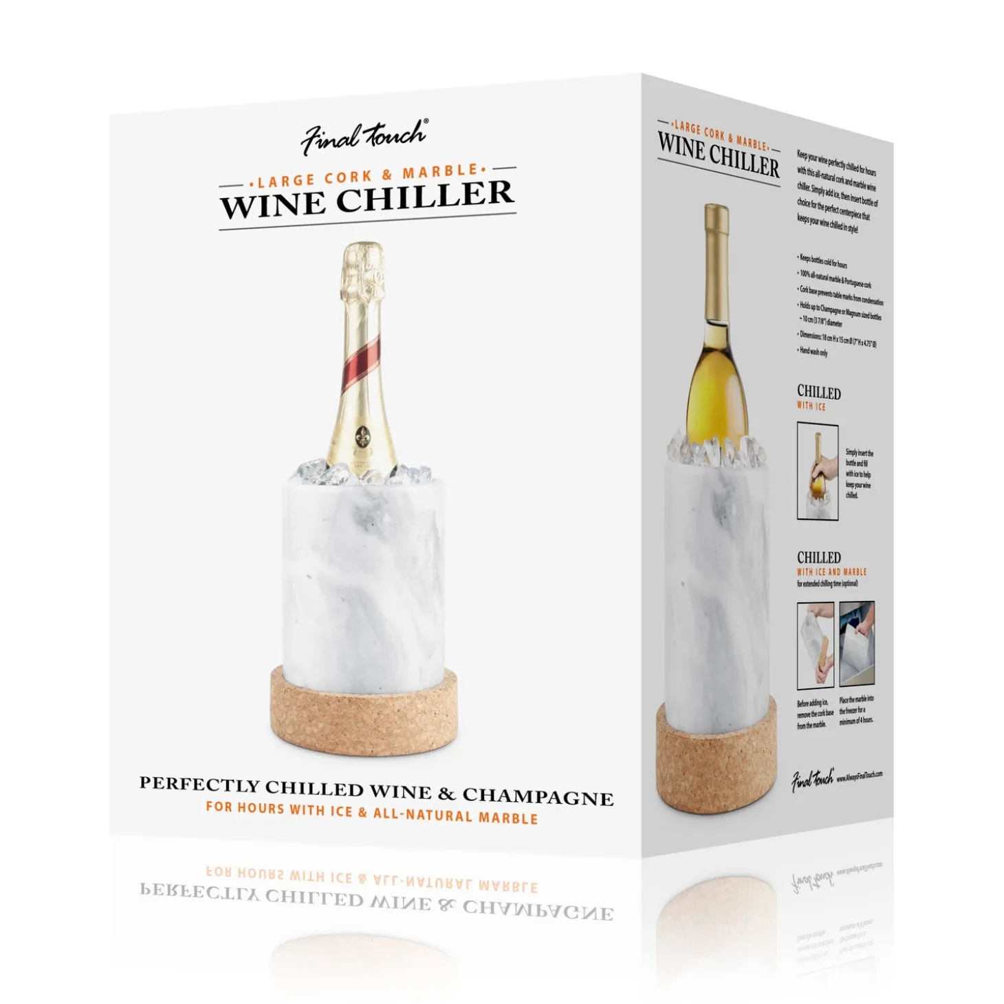 Keep your wine perfectly chilled for hours with this all-natural cork and marble wine chiller. Simply freeze the marble, then insert bottle of choice for the perfect centerpiece that keeps your wine chilled in style! “