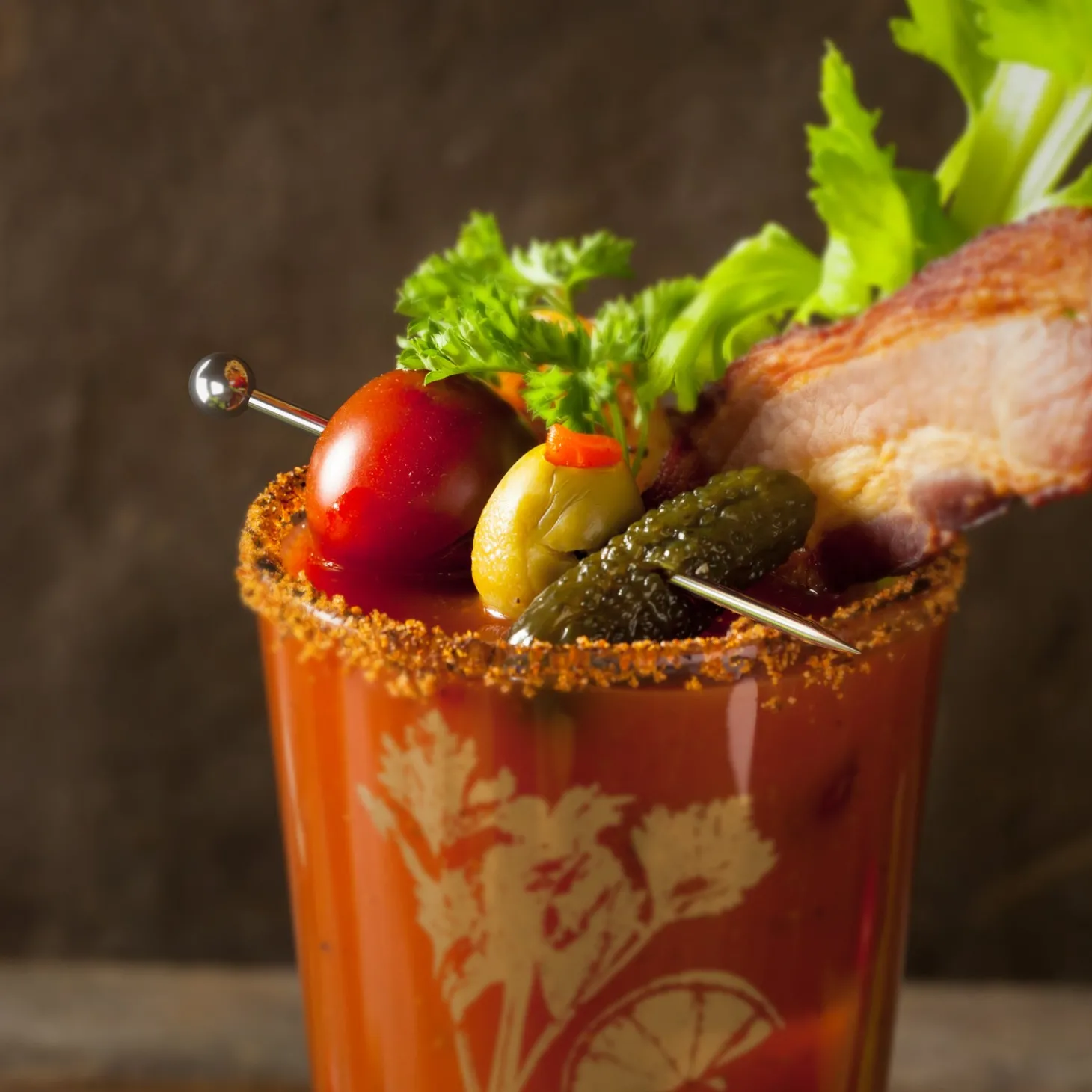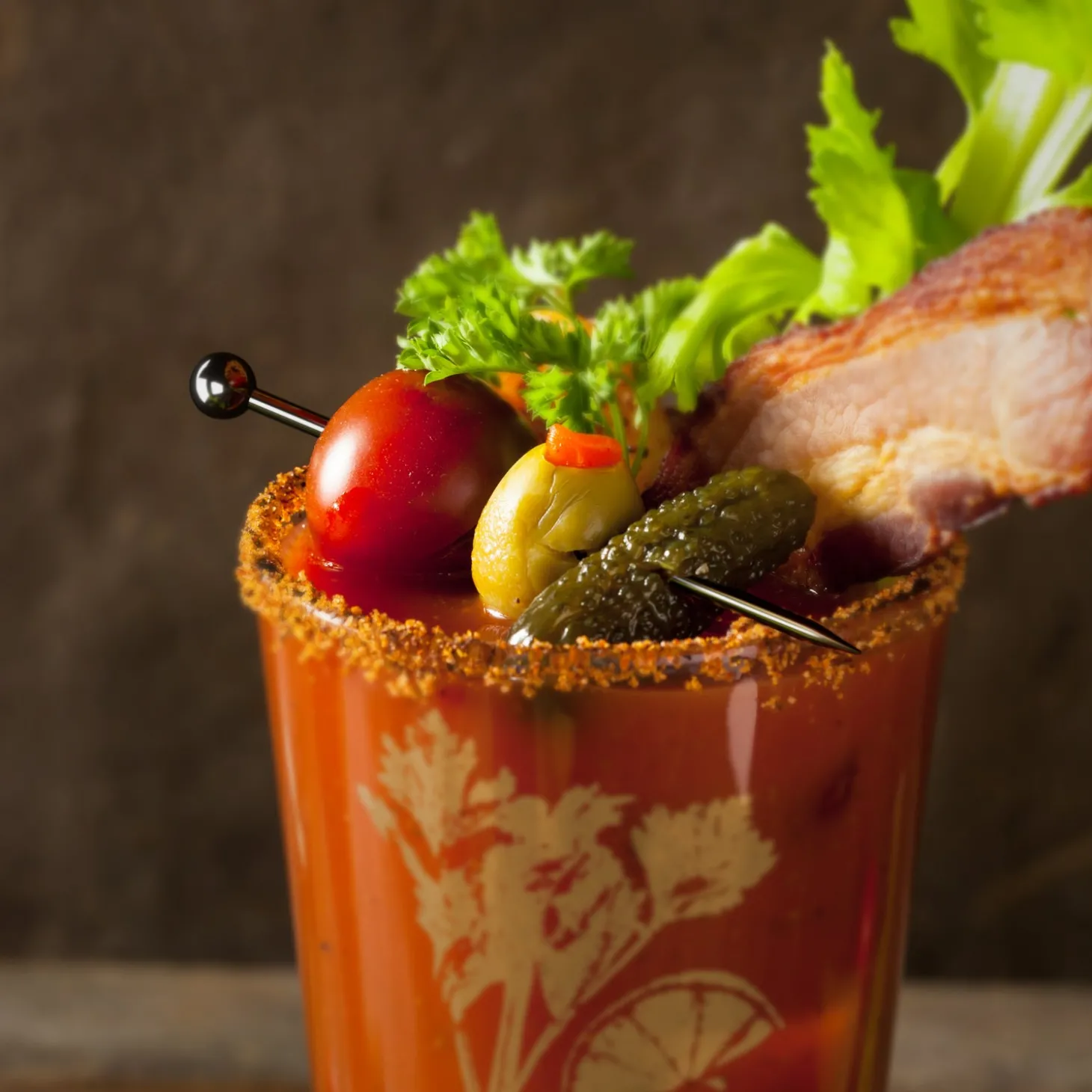 Skewer garnishes like olives, cherries & melons.