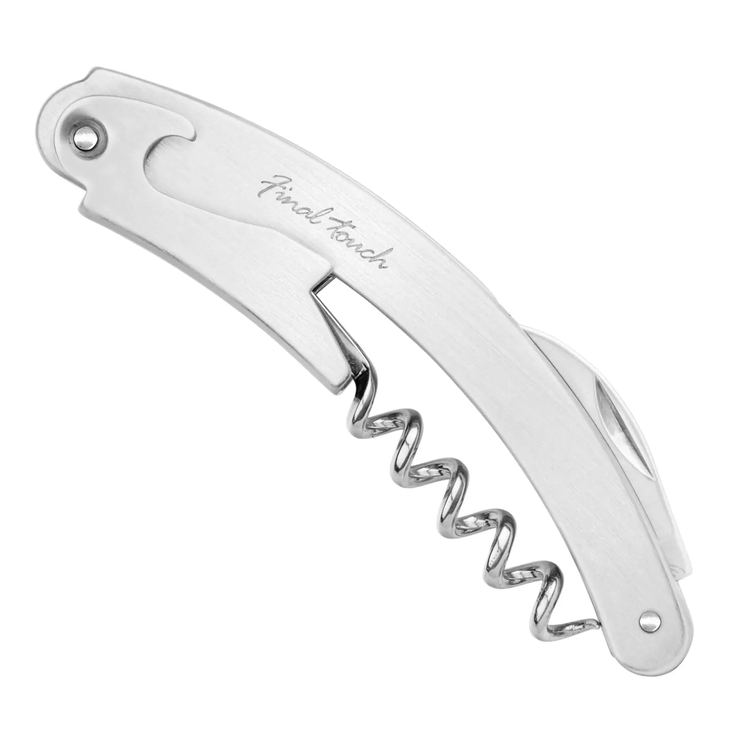 So simple and compact its the preferred tool for waiters & bartenders.The single lever arm helps to remove corks quickly & easily. Made from durable stainless steel parts and chrome plated spiral. Also features a built-in fold out foil cutter with bottle opener on lever.