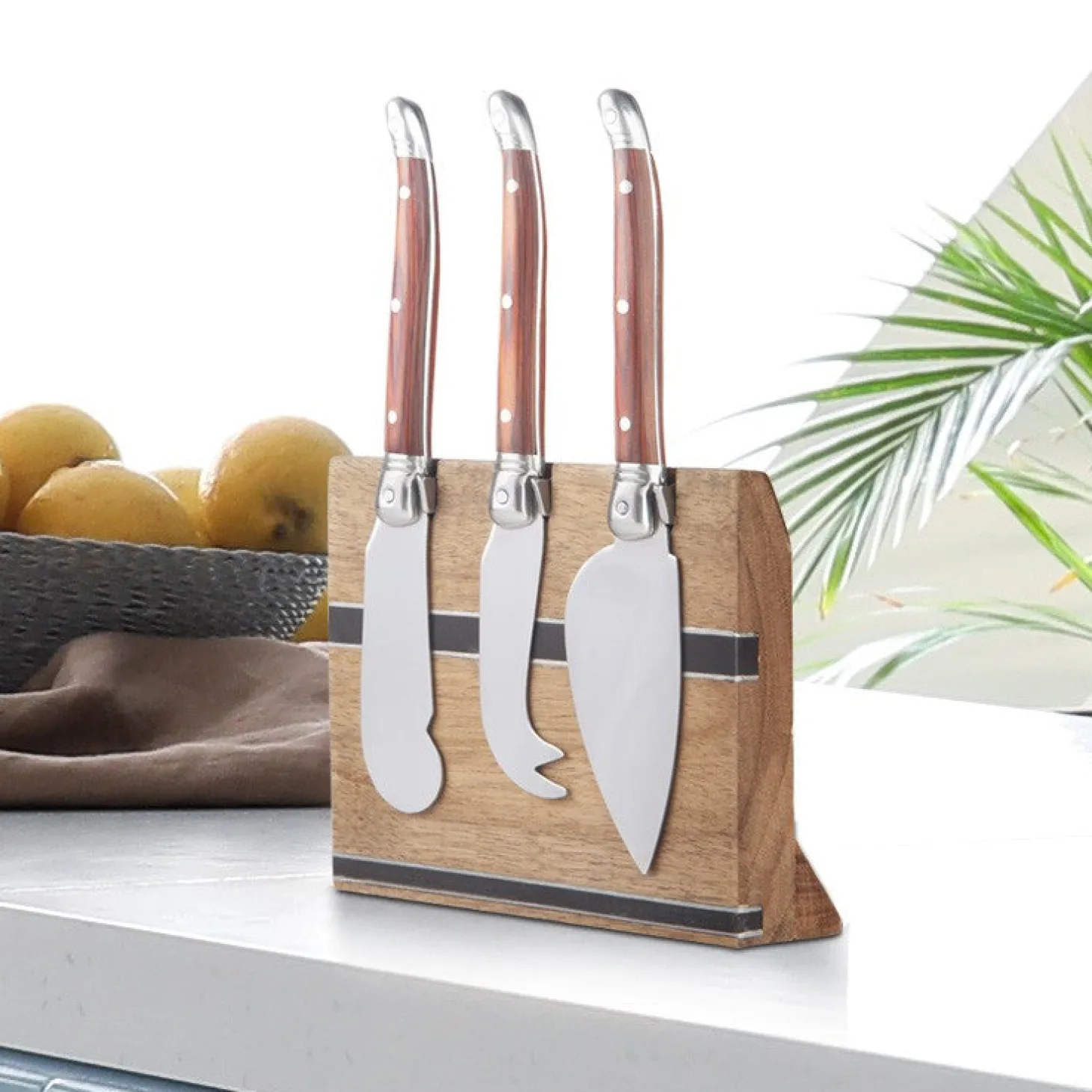 Magnetic BlockSimply pull off the desired knife to cut cheese and then replace when finished.