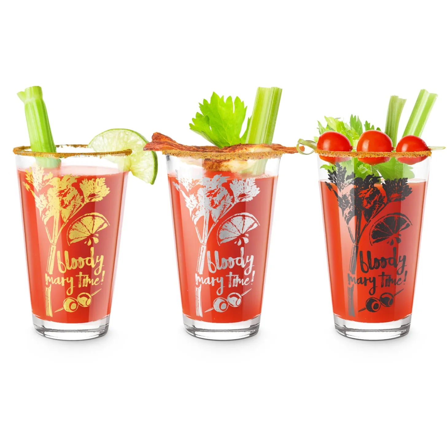 Bloody Mary Time Cocktail Glasses – Set of 3 – Gold, Silver & Black