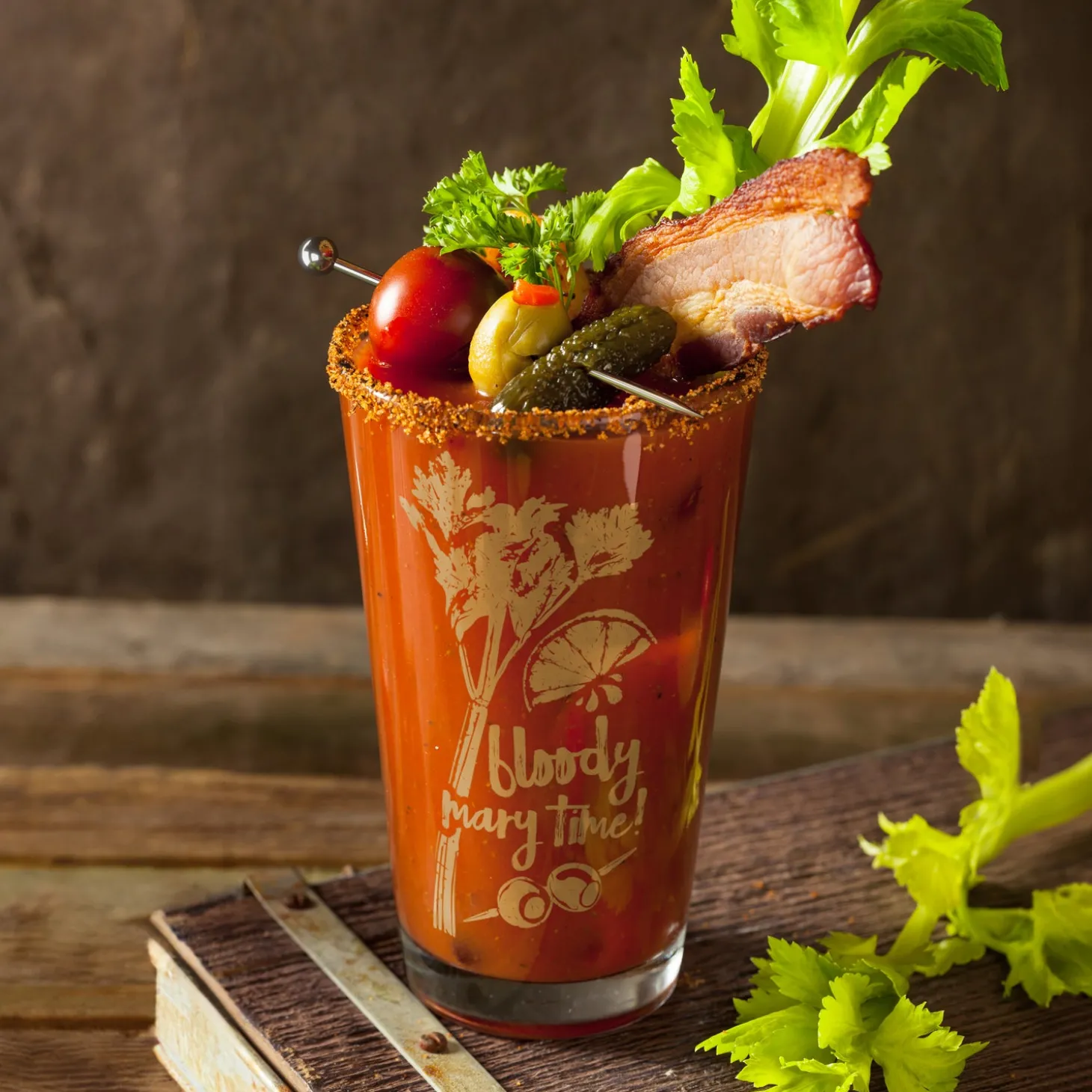 Add a unique touch to the table with these one of a kind Bloody Mary glasses.