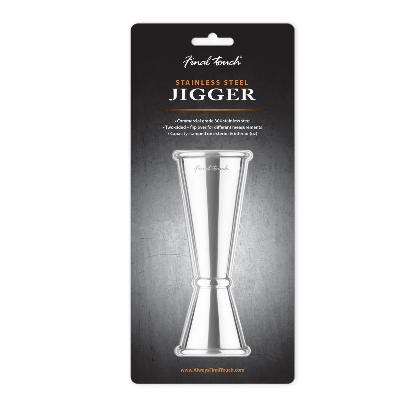 Quickly measure out liquor for cocktails with this 304-grade stainless steel jigger. Just turn over for different measurements from 1 oz to 2 oz.