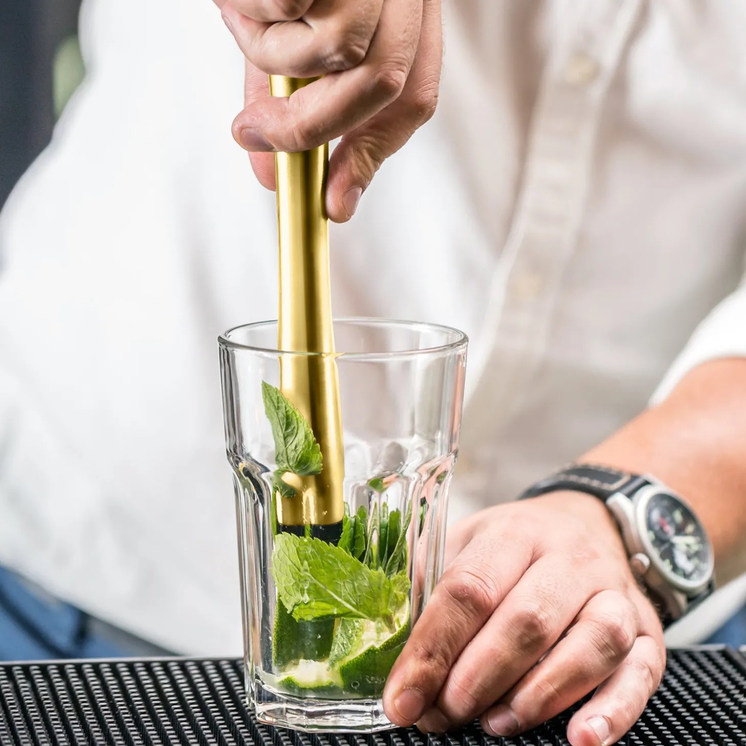 This essential bar tool is perfect for mixing up some Mojitos, Mint Juleps & Caipirinhas. The food-grade plastic head features little teeth for crushing ingredients quickly & easily. Constructed from stainless steel the durable handle is curved and ergonomically designed to fit comfortably in your hand.”