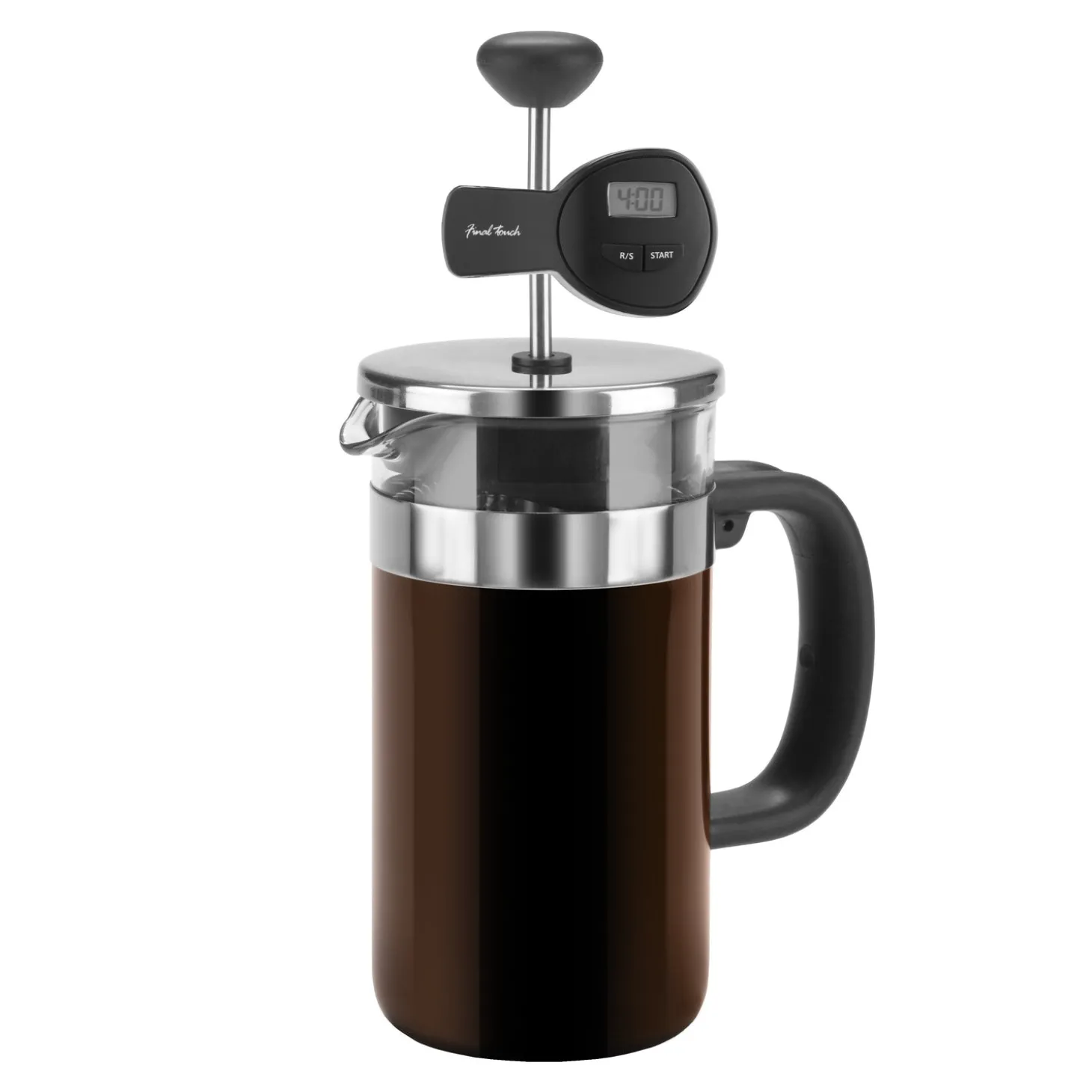 Magnets on back keep it handy Clips onto Stem of Plunger Fits all Sizes & Brands of Presses Battery and Instructions Included Coffee press not included “