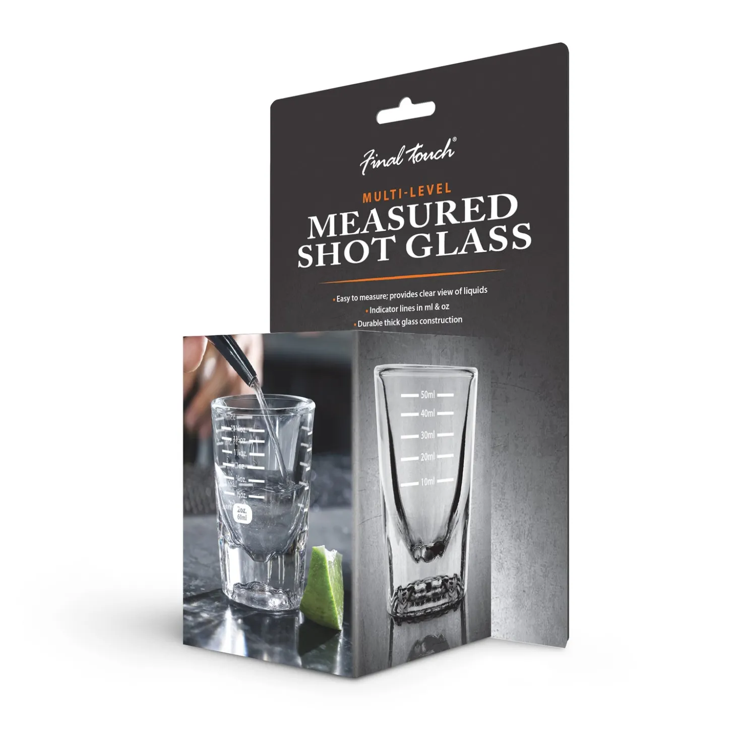 Quickly measure out liquor for cocktails with this 3-sided measuring shot glass. This little glass includes standard measurements used around the world in both oz and ml for mixing up the perfect cocktail. Durable thick glass provides a clear view of measurements while filling for precise pours.