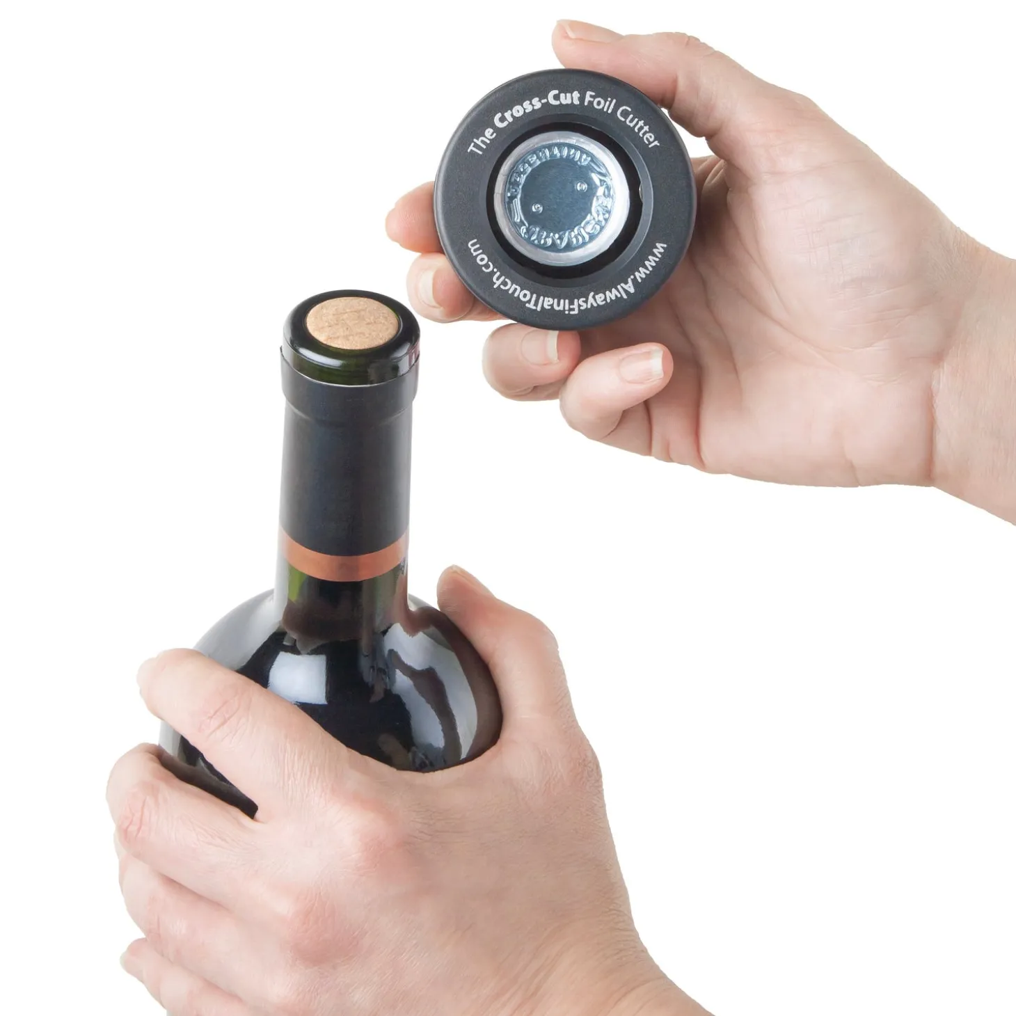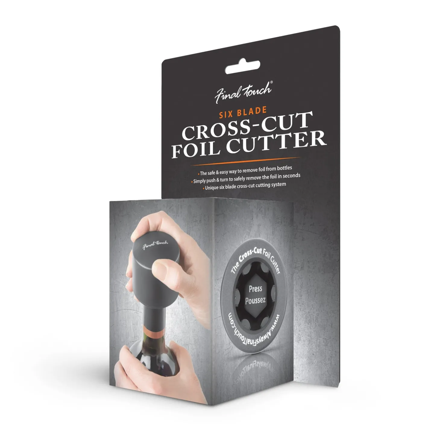 Remove foil from wine bottles easily with the six blade cross-cut foil cutter. The 6 blades are hidden inside the body making it very safe to use. Simply place on the bottle, push & turn to safely remove the foil in seconds.