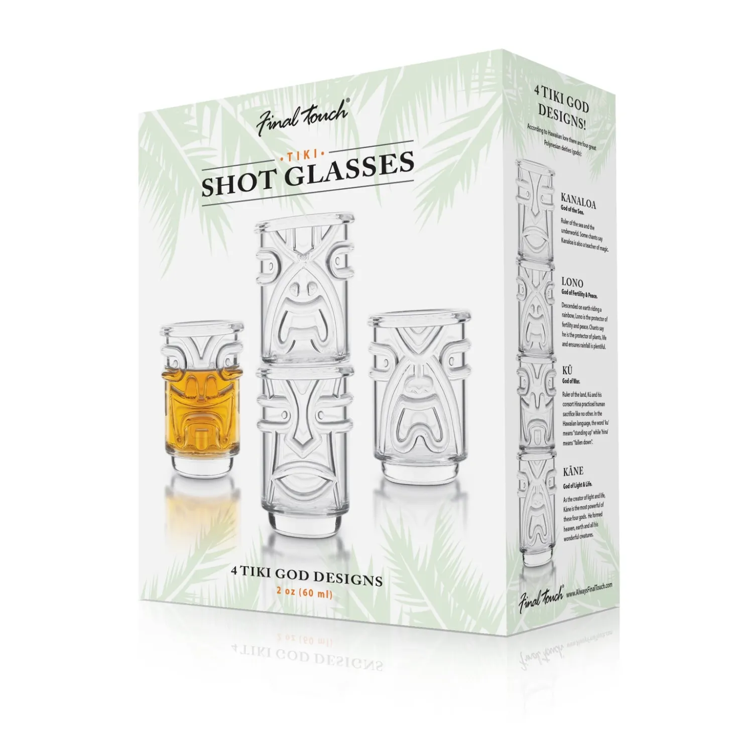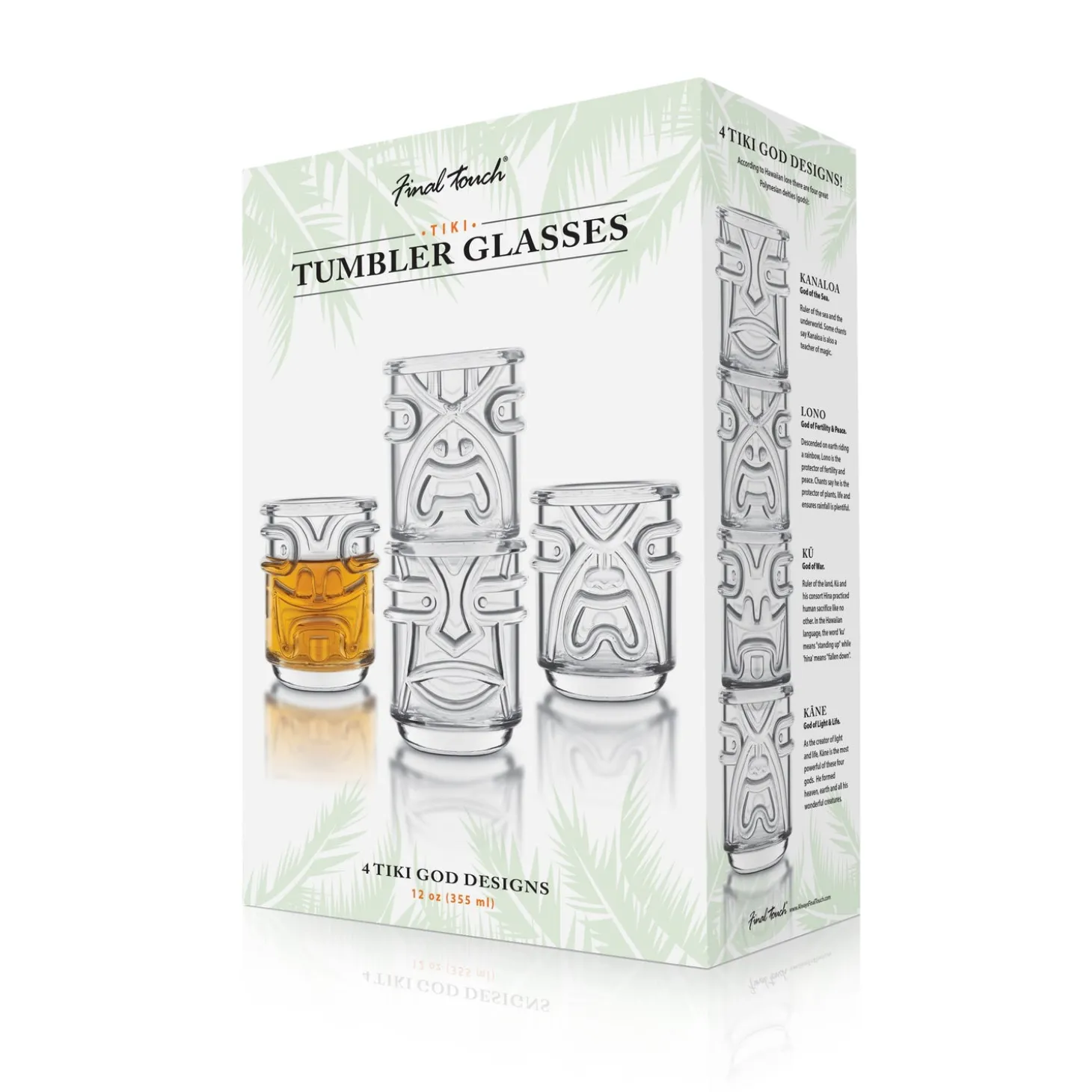 Serve up some tropical drinks from these fun and stylish tiki glasses. Each of the 4 glasses are differently designed to resemble 4 of the great Polynesian deities (gods). They stack cleverly together for compact totem pole storage.