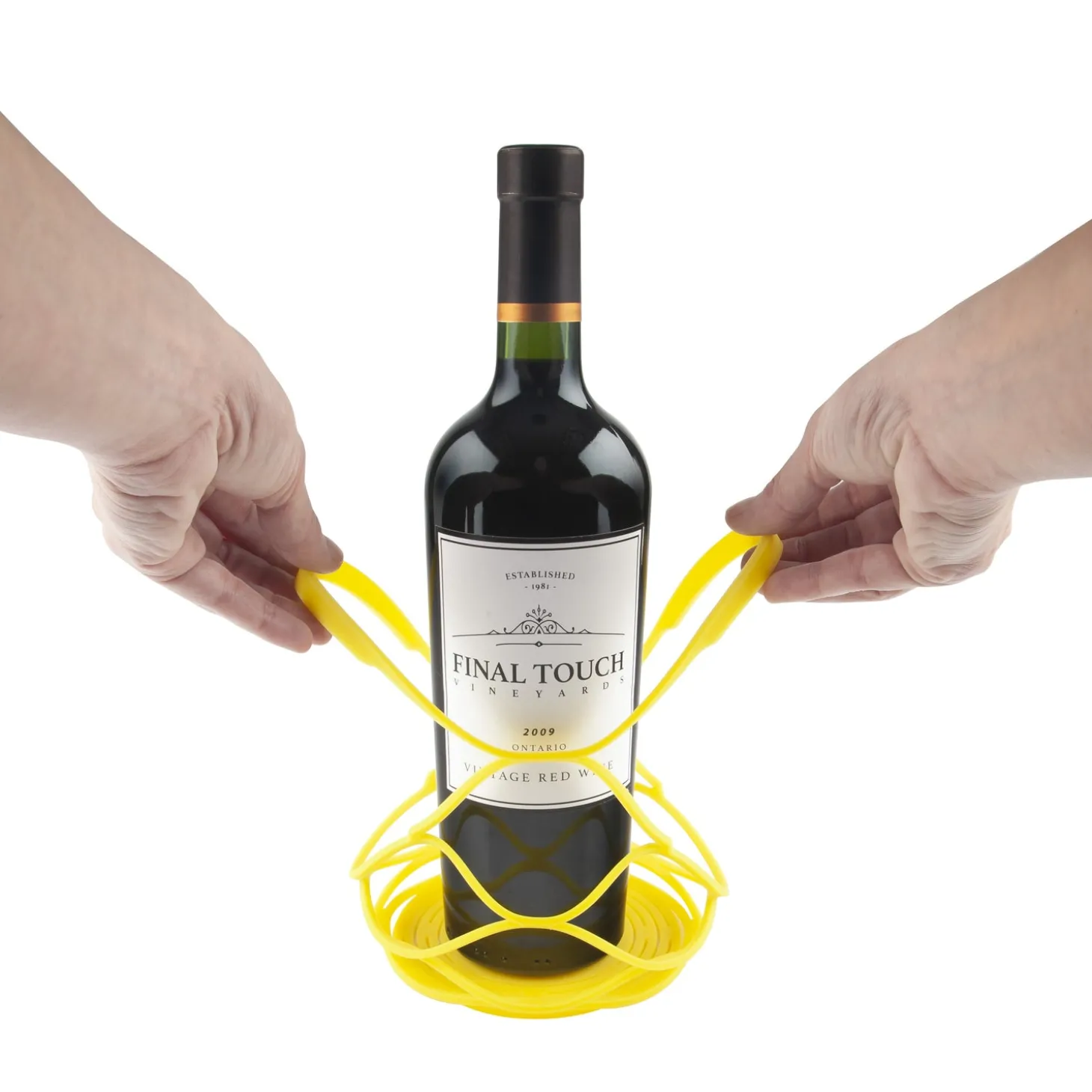 The Up & Away Collapsible Silicone Bottle Bag is the extremely compact & eco-friendly way to carry bottles. Use it to carry wine, liquor and soda bottles for a great alternative to paper or plastic bags. The soft BPA-free & certified food-grade silicone helps to protect the bottle and also can be used as a coaster or pot trivet.