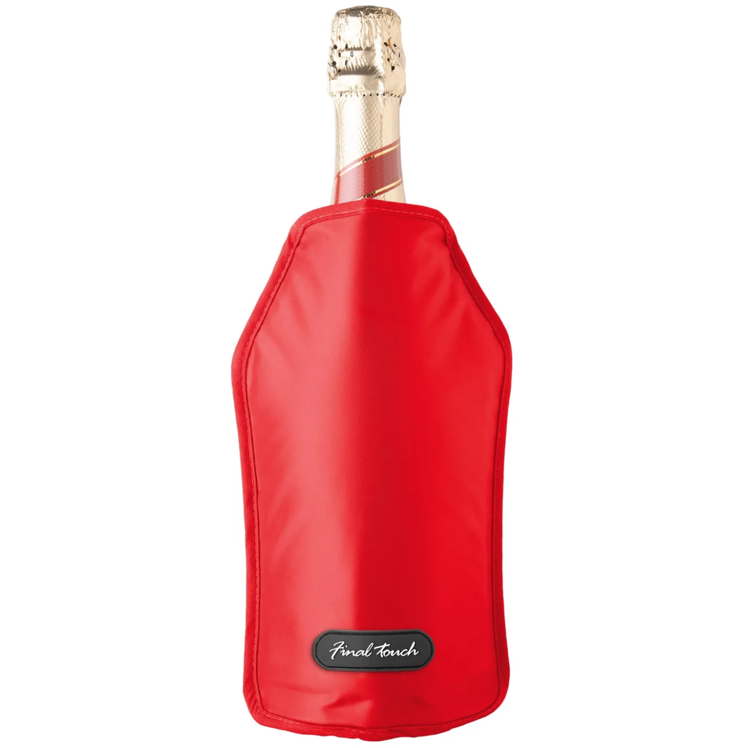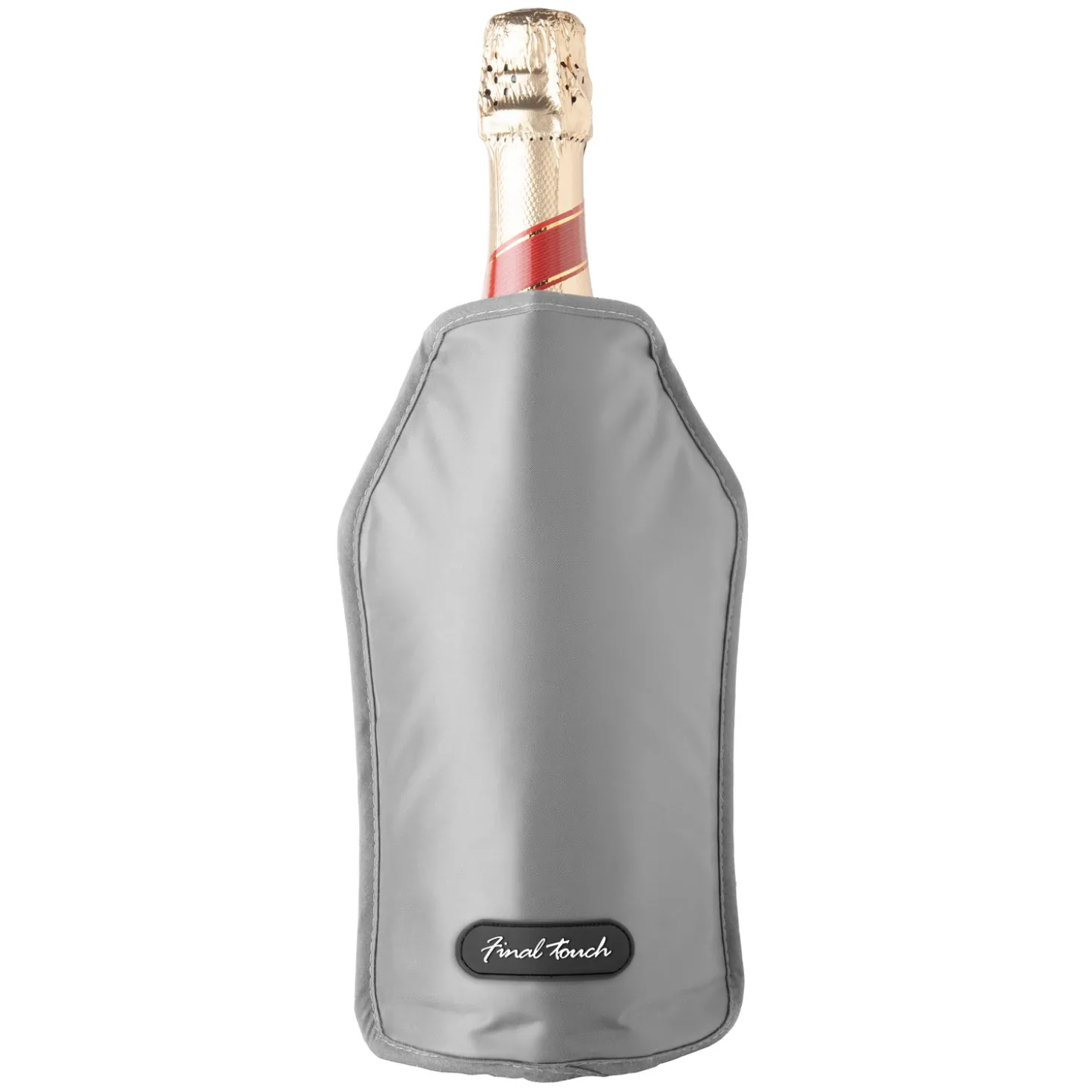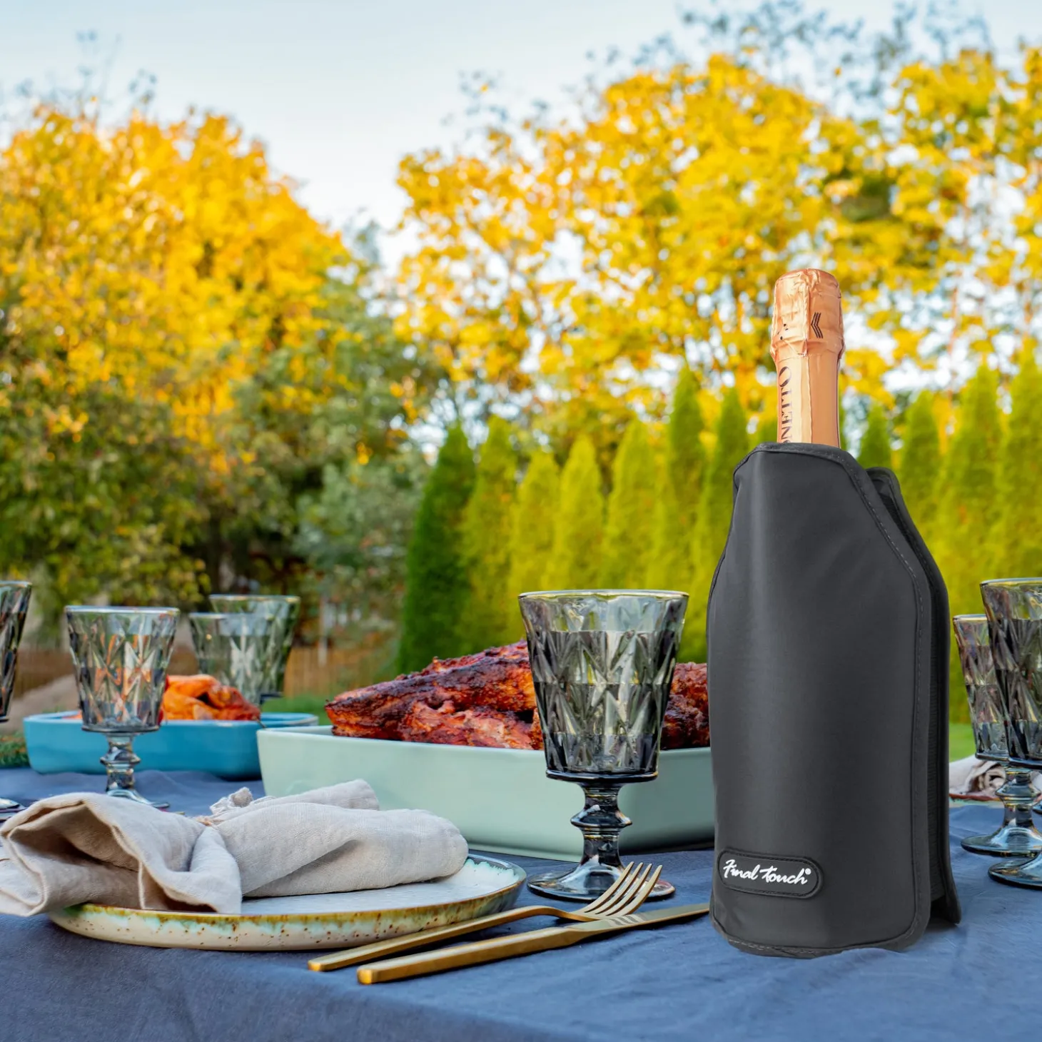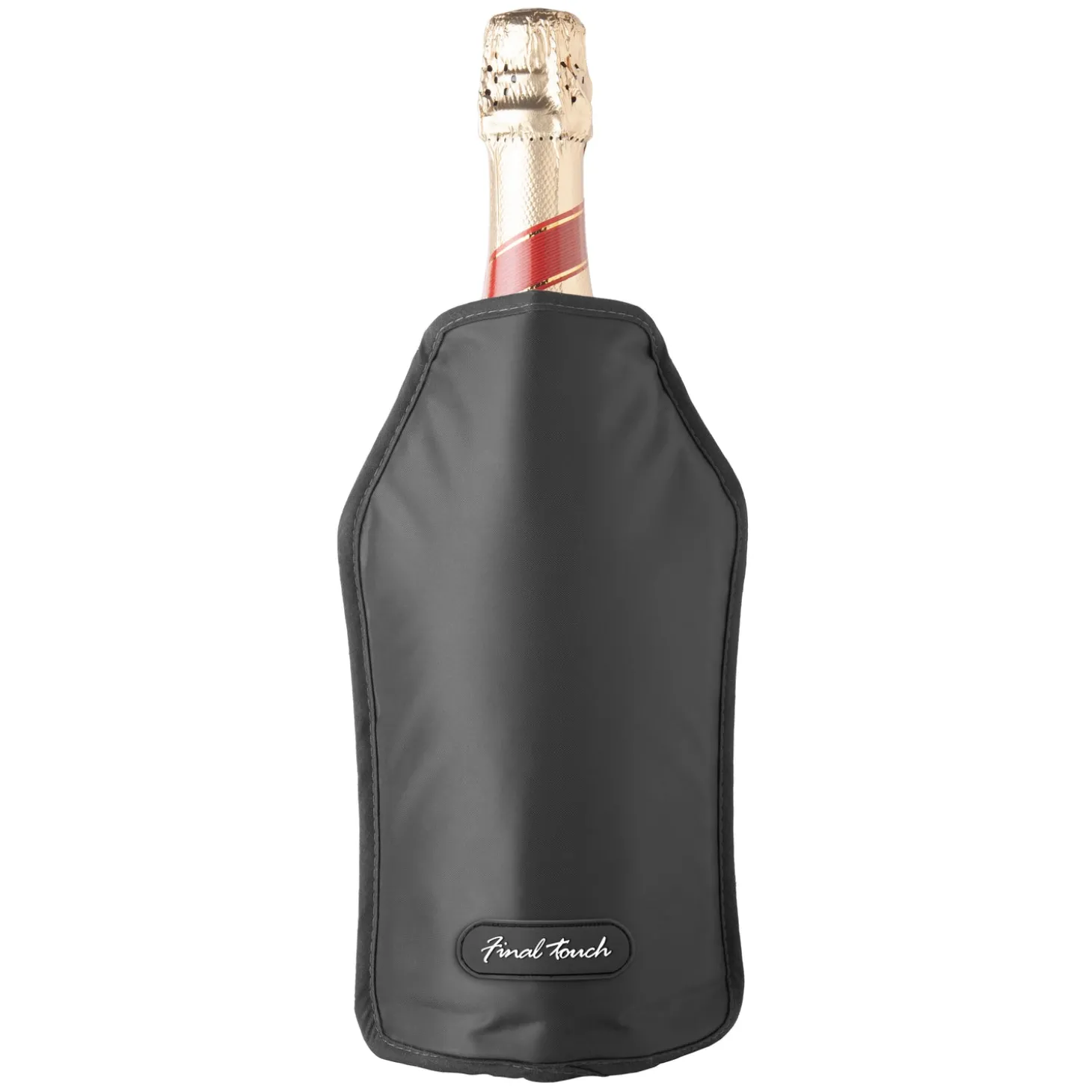 The Final Touch Bottle Cooling Sleeve keeps your bottles cold for up to 1 hour without messy drips from ice. Simply freeze and slide it over your bottle for a snug fit. The dual gel packs ensure an even, consistent chill with its solid gel pack design that does not sag. Perfect for wine, Champagne, liquor, sake, soda and more, it fits standard 750 ml bottles perfectly. Elevate your beverage experience now!